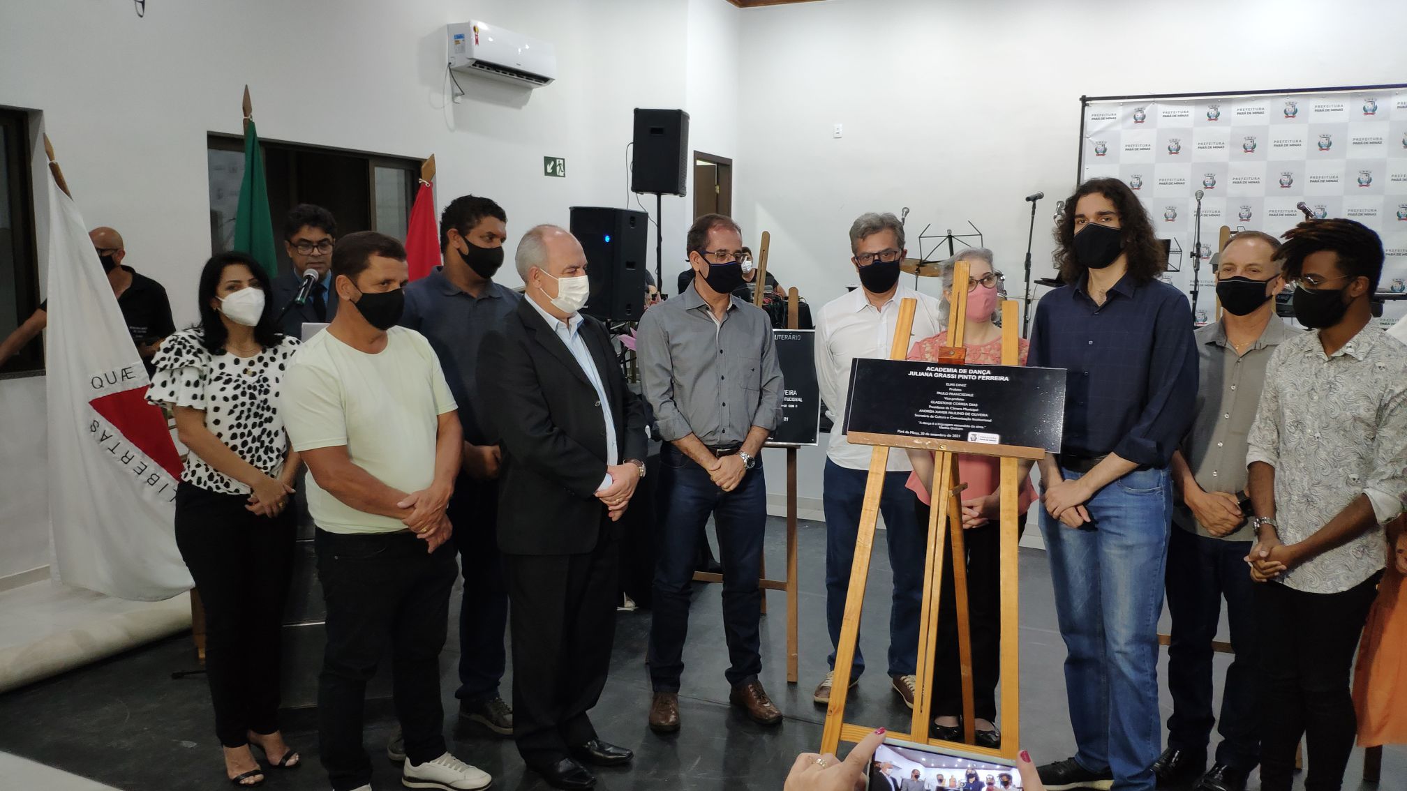 Diversas autoridades marcaram presença na cerimônia, entre elas o Deputado Federal Diego Andrade, Deputado Estadual Inácio Franco, o Comandante da 19ª Companhia de Polícia Militar Independente de Pará de Minas Tenente-Coronel Geraldo Elias, o Presidente da Câmara Vereador Toninho Gladstone, o Prefeito Elias Diniz, o Vice-prefeito Paulo Francisdale, a Secretária Municipal de Cultura e Comunicação Institucional Andréia Xavier Paulino, os vereadores Márcio Lara, Marcílio Magela, Dilhermando Rodrigues, Cléber Gonçalves, Irene Melo Franco, Márcia Marzagão, Rodrigo Alves e Sérgio Martins, e também Secretários Municipais.
