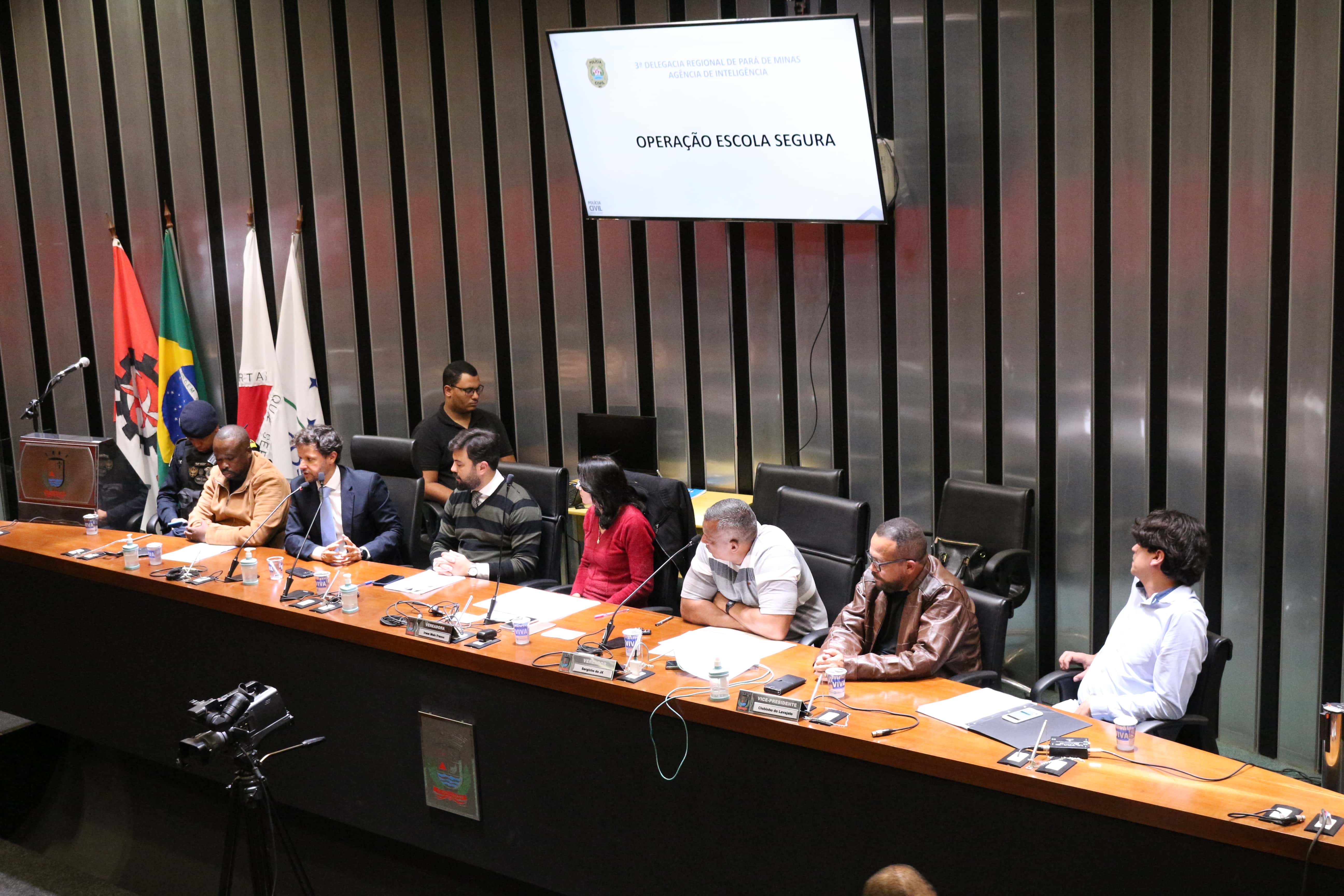 No plenário, os vereadores Irene Melo Franco, Serginho do JK, Toninho Gladstone, Gustavo Henrique e Clebinho do Lavajato receberam representantes da Polícia Civil, da Guarda Civil Municipal e da Superintendência Regional de Ensino. Professores e outros profissionais da educação também participaram da audiência e contribuíram com a discussão.