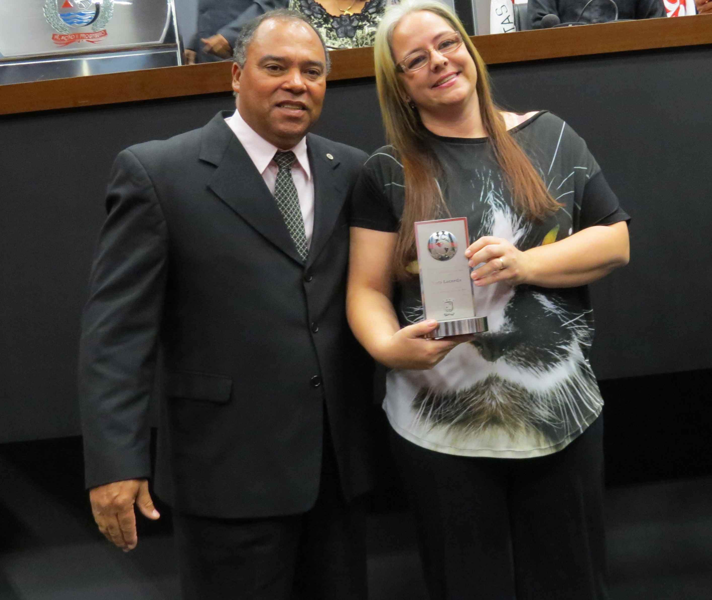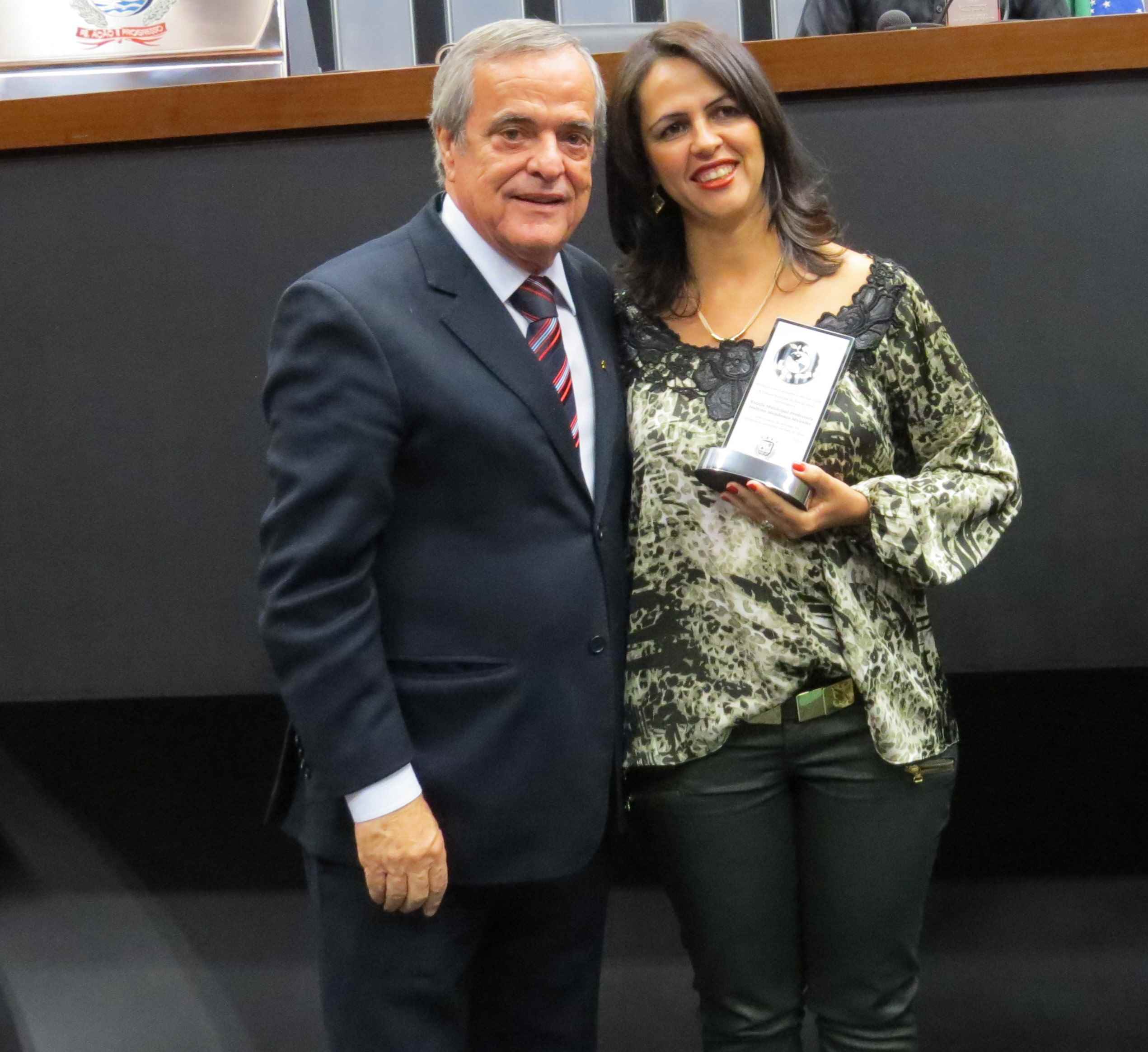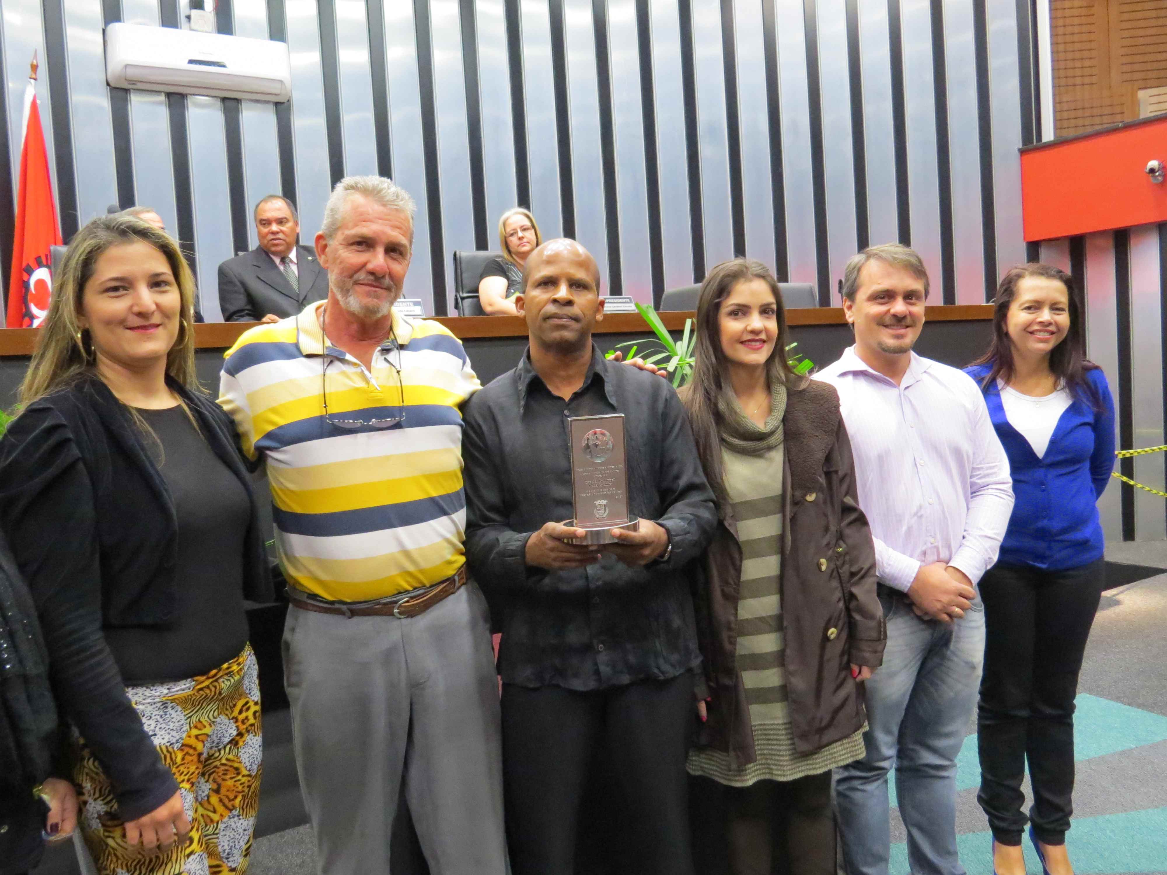 Em seguida foram lidos os currículos dos homenageados, iniciando pelo promotor de justiça Delano Azevedo Rodrigues, curador do meio ambiente em Pará de Minas, que tem se revelado incansável na luta em defesa das questões ambientais. O promotor não pode comparecer, mas justificou a ausência, por motivos de compromissos assumidos anteriormente. Na sequência foi lido o currículo das atividades realizadas na Escola Municipal D. Cotinha, por meio do projeto “REVIVA”. A instituição foi representada pelo diretor Gerson Eduardo, que recebeu o troféu entregue por Reinado Zampese, representante do Codema e Ama Pangeia. Prosseguindo a leitura dos currículos, a Escola Municipal Professora Izaltina Mendonça Meireles foi homenageada pela implantação do projeto AQUA VITA, que capta água das chuvas para manutenção da escola. Quem representou a instituição foi a diretora Isabel Cristina da Silva que recebeu o troféu entregue pelo prefeito Antônio Júlio de Faria. A quarta homenageada foi a médica veterinária Yara Lacerda, que promove ações de resgates, adoções e conscientização em defesa dos animais, especificamente de cães e gatos. Ela recebeu o troféu entregue pelo presidente da Câmara Carlos Lázaro.