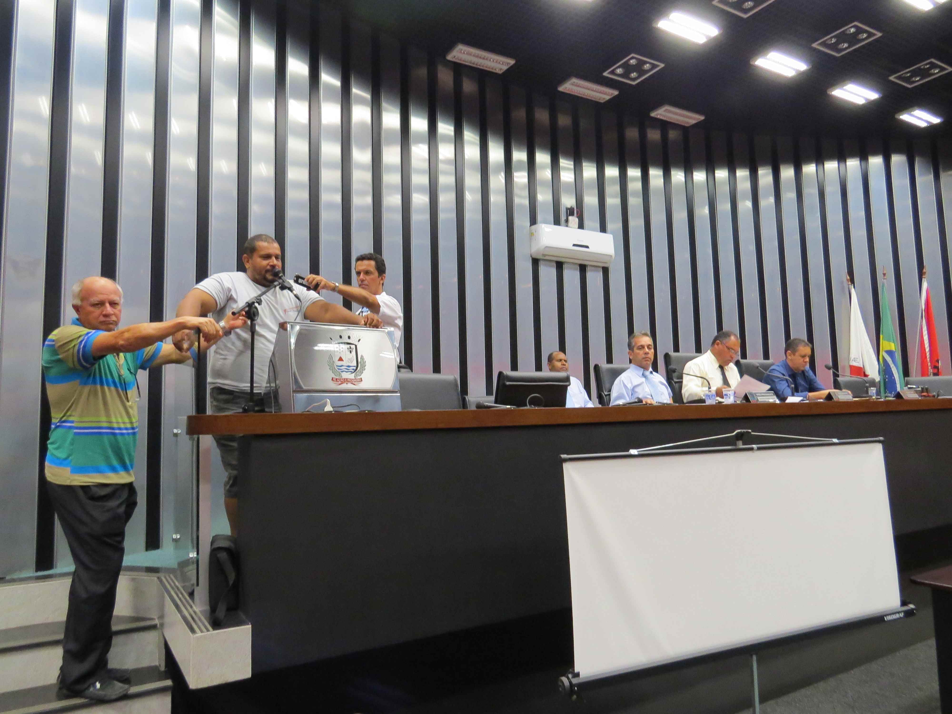 A reunião foi aberta pelo presidente Carlos Lázaro, que, após leitura da ata e de proposições, colocou em discussão o Projeto de Lei nº 12/2015, de autoria do vereador Marcílio de Souza, que denomina José Ferreira da Silva a quadra de malha situada na rua Altino Correia Viana, no bairro Dom Bosco. Na semana anterior, o projeto foi aprovado em primeira votação e, nesta reunião, foi aprovado em segunda por 13X00.