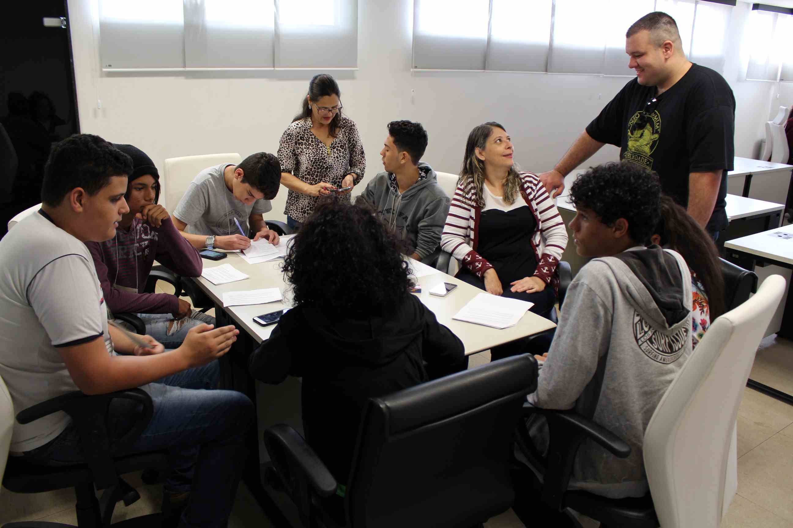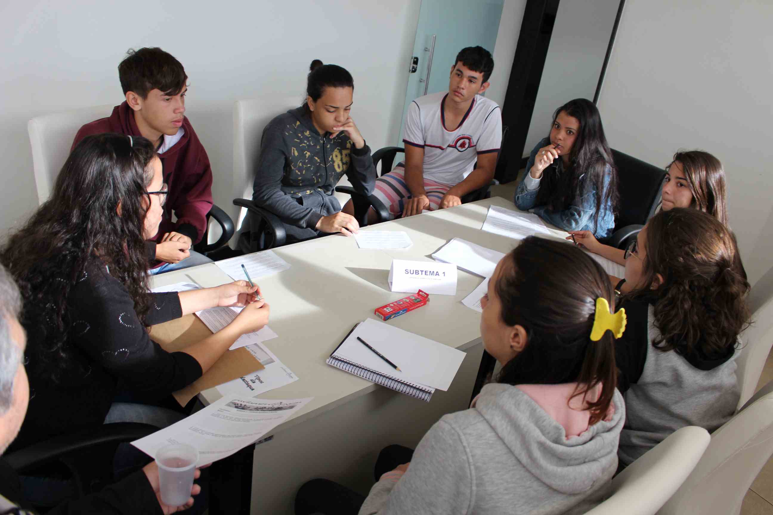 A diretora da Escola do Legislativo "Alfeu Silva Mendes", Aparecida Santos e demais monitores se mobilizaram para realizar a oficina com os estudantes das Escolas Nossa Senhora Auxiliadora, Ângela Maria e Avany Villena. A turma foi dividida em três grupos com o objetivo de estudarem e debaterem o tema "Violência contra a Mulher". Em seguida, cada grupo elaborou quatro propostas de solução dos problemas identificados em Pará de Minas, que serão levadas à Plenária Municipal, na próxima quarta-feira, dia 13 de junho.