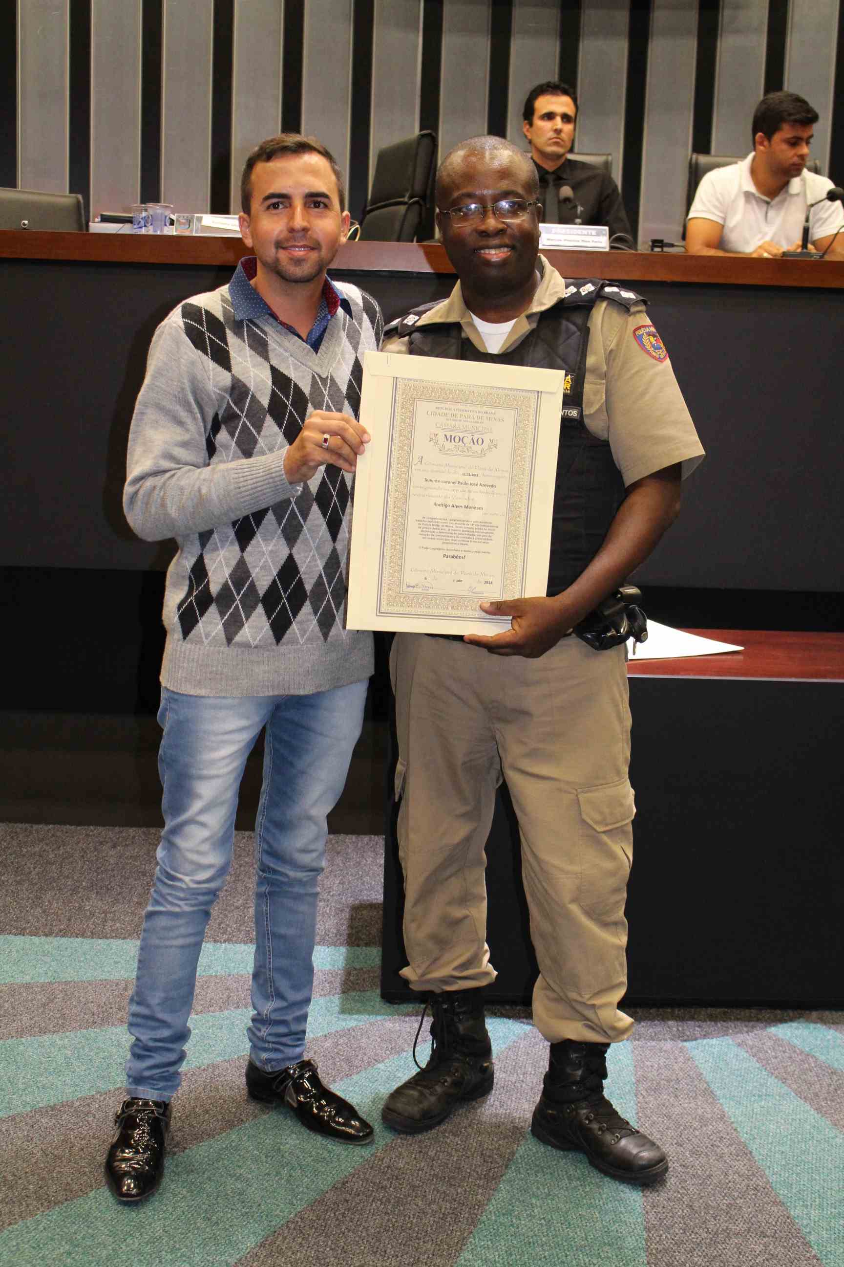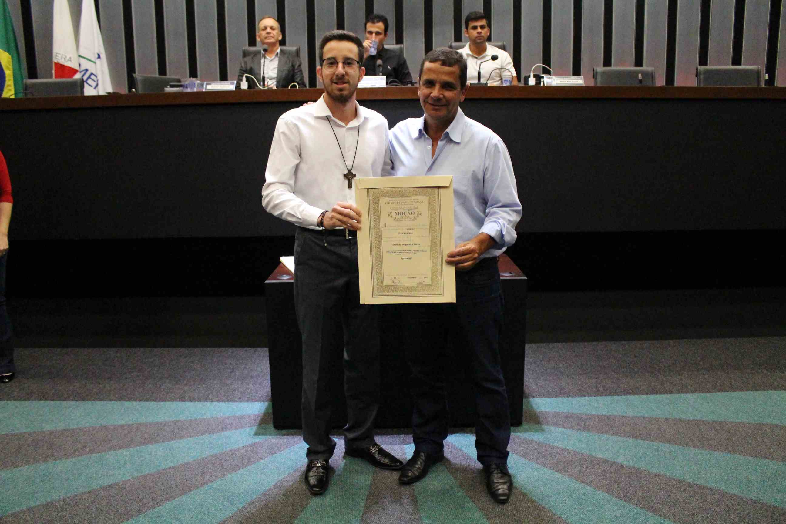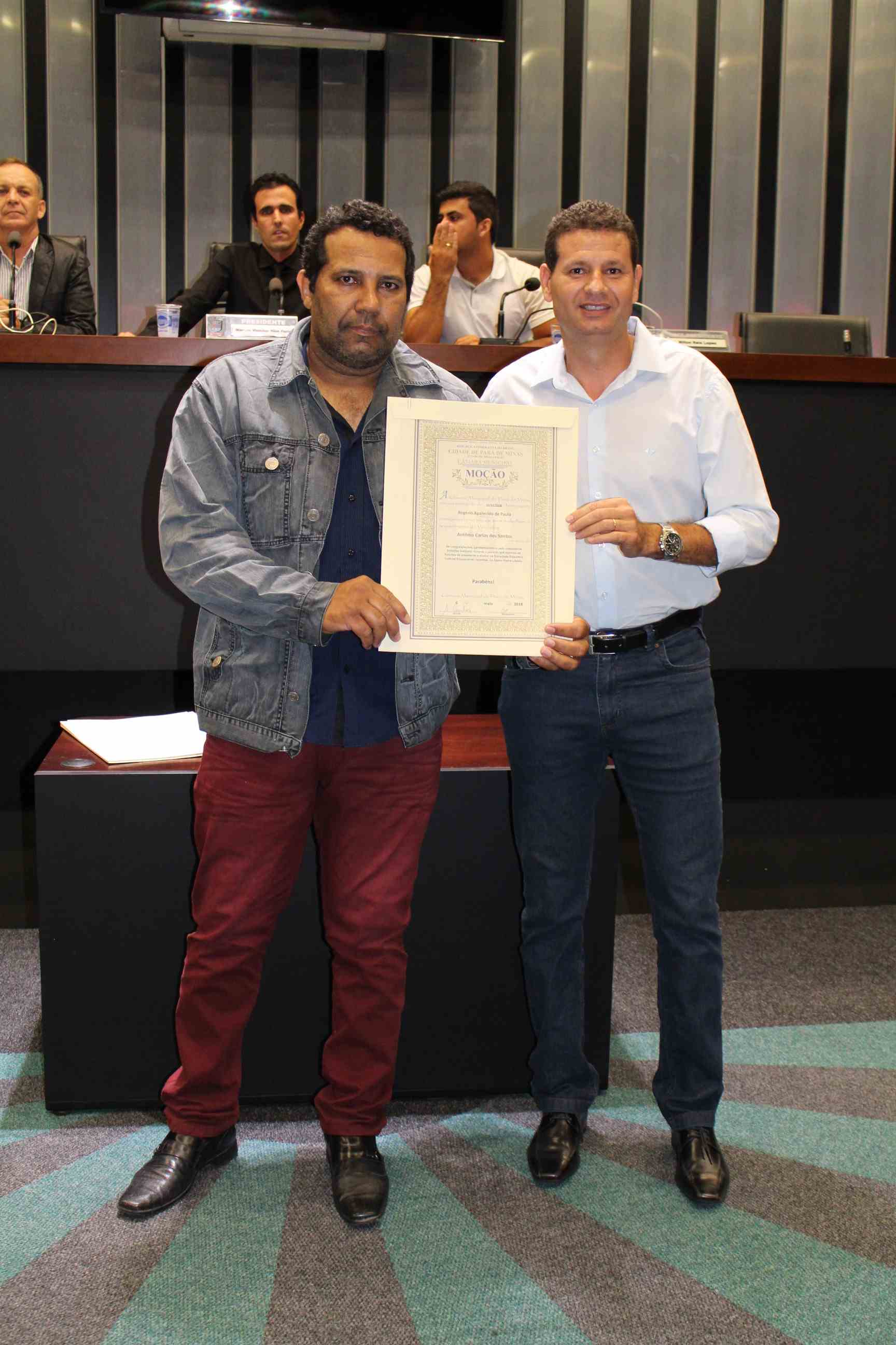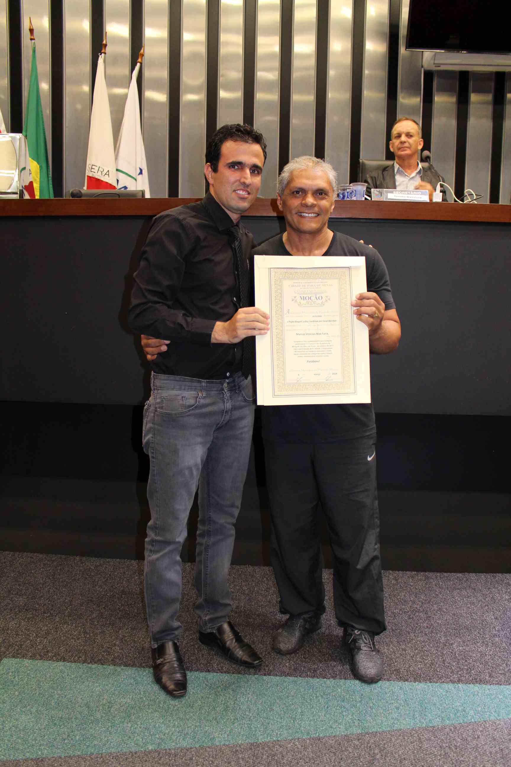 A reunião foi suspensa para entrega de moções de aplausos. O presidente Marcus Vinícius homenageou o projeto Morganti Ju-Jistsu. O vereador Marcílio de Souza prestou homenagens ao Vinícius Alves e à Cooperativa de Crédito Sicoob Ascicre pela realização da 4ª edição Nascidos para Correr. O vereador Toninho Gladstone homenageou as Filhas de Jó (Bethel Flores de Acácia nº 60 de Pará de Minas) e ao maestro Samuel Lopes. O vereador Carlinhos do Queijo prestou homenagem para Ronaldo Aparecido de Paula e, o vereador Rodrigo de Torneiros homenageou o tenente-coronel Paulo José Azevedo.
