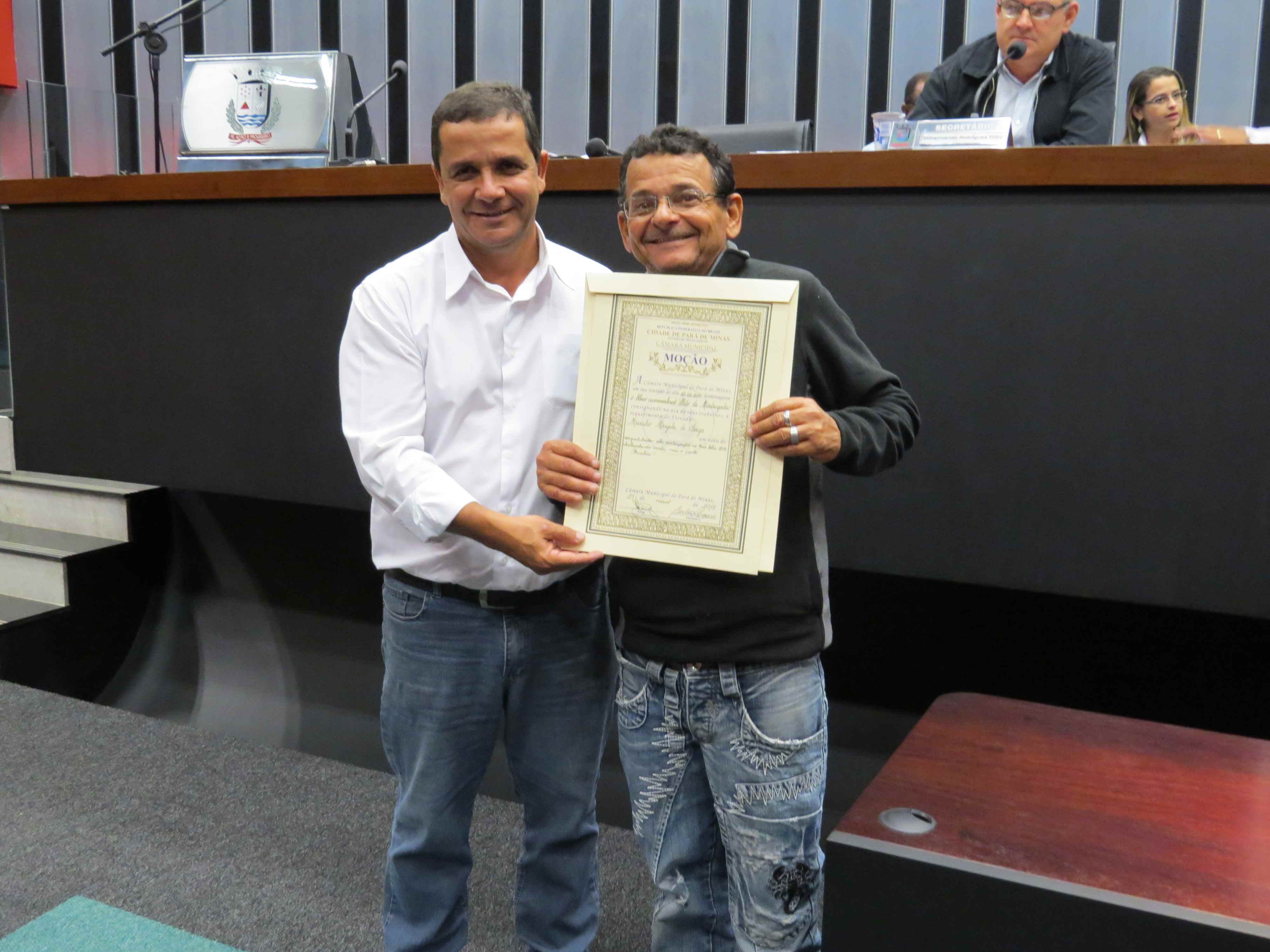 Prosseguindo os trabalhos, o presidente Carlos Lázaro suspendeu a reunião para entrega de 3 moções de aplausos. O vereador Marcílio de Souza homenageou o Grêmio Recreativo Escola de Samba Unidos do Morro, a equipe Ginsa – Gincana Nossa Senhora Auxiliadora e o bloco carnavalesco Pato da Madrugada.