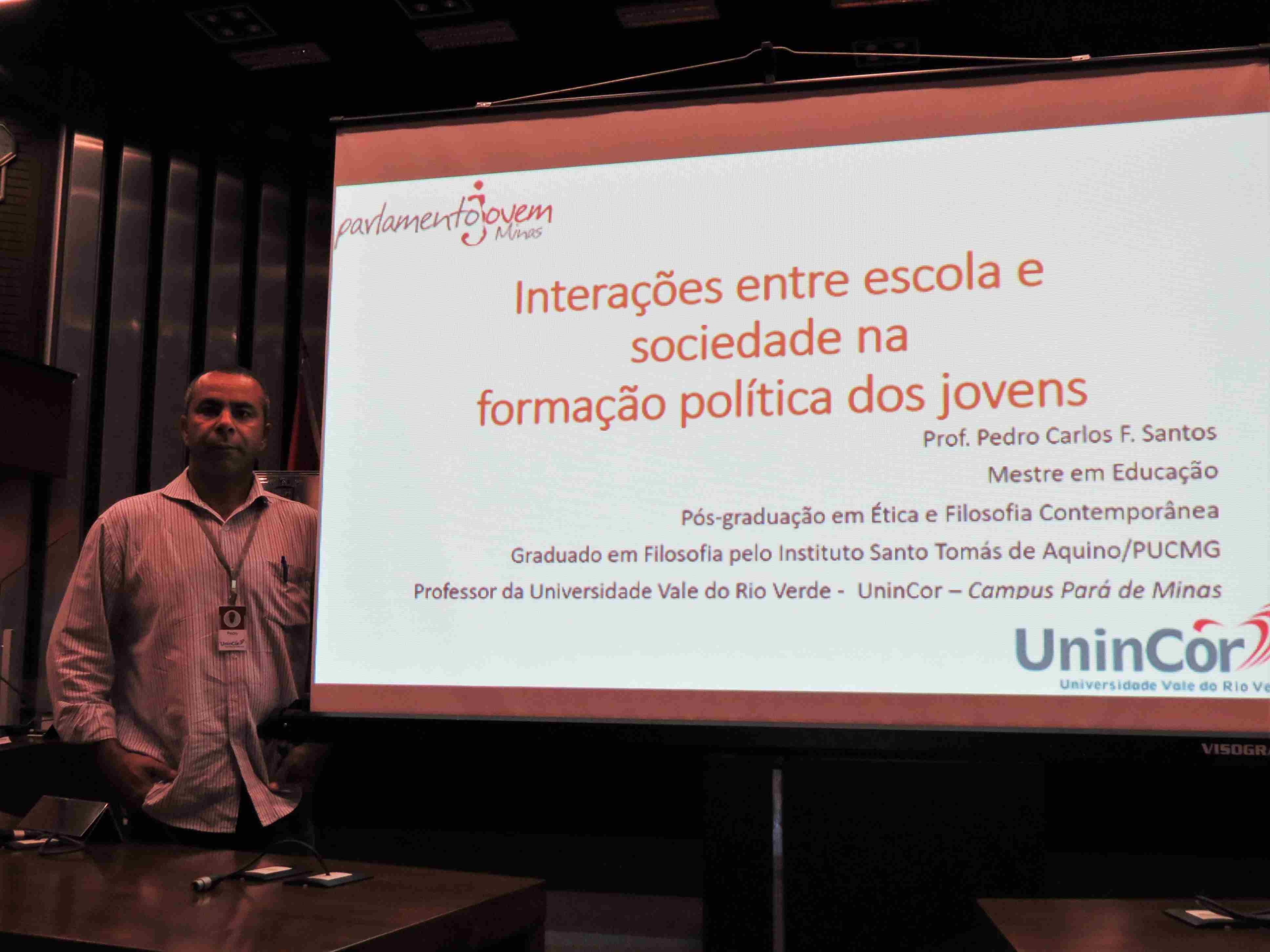 A 4ª oficina do Parlamento Jovem de Pará de Minas aconteceu na tarde desta terça-feira, 11 de abril, no plenário da Câmara Municipal. Os alunos das escolas Avany Villena, Nossa Senhora Auxiliadora e Fernando Otávio participaram da palestra com o subtem “Interações entre escola e sociedade na formação política dos jovens” ministrada pelo professor e coordenador pedagógico da UninCor – Universidade Vale do Rio Verde, Pedro Carlos Ferreira Santos.